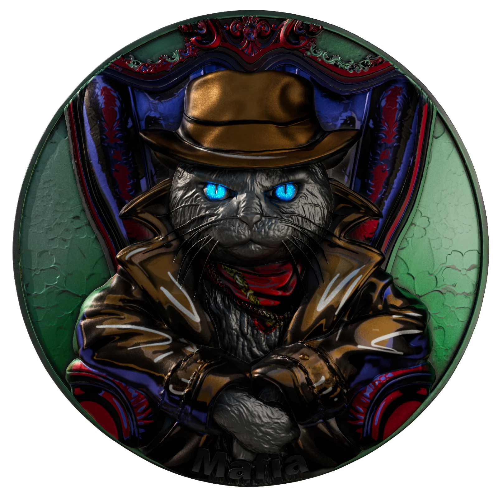This impressive 2-ounce silver coin kicks off the “Meow” series, dedicated to the charismatic and dangerous members of the feline world. The reverse features a majestic feline mafia boss, radiating confidence and cold superiority. With narrowed eyes, a tilted hat, and a commanding stance, he exudes power and untamed instinct. The coin has an antique finish and high relief that emphasizes every detail of the design. A special element glows in the dark, adding an extra touch of mystery. The coin is issued in a stylish case with a certificate of authenticity and is limited to only 199 pieces worldwide.