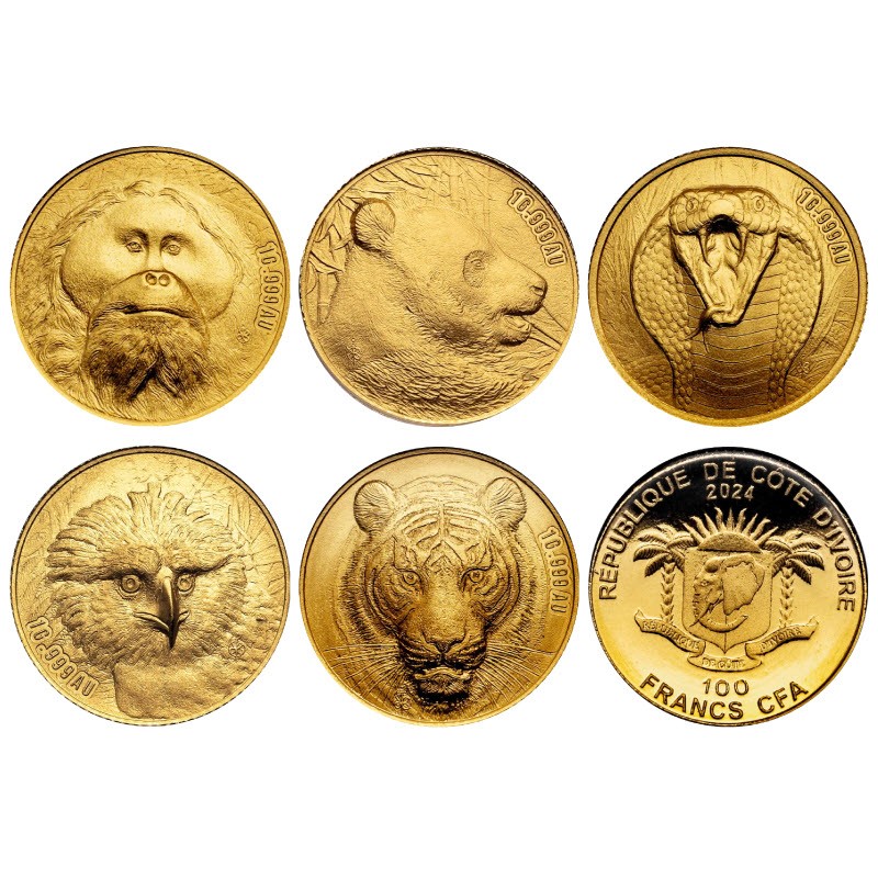 Republic of Côte d'Ivoire: gold coins Animals Asia 2024 set 5 g Collectible coins