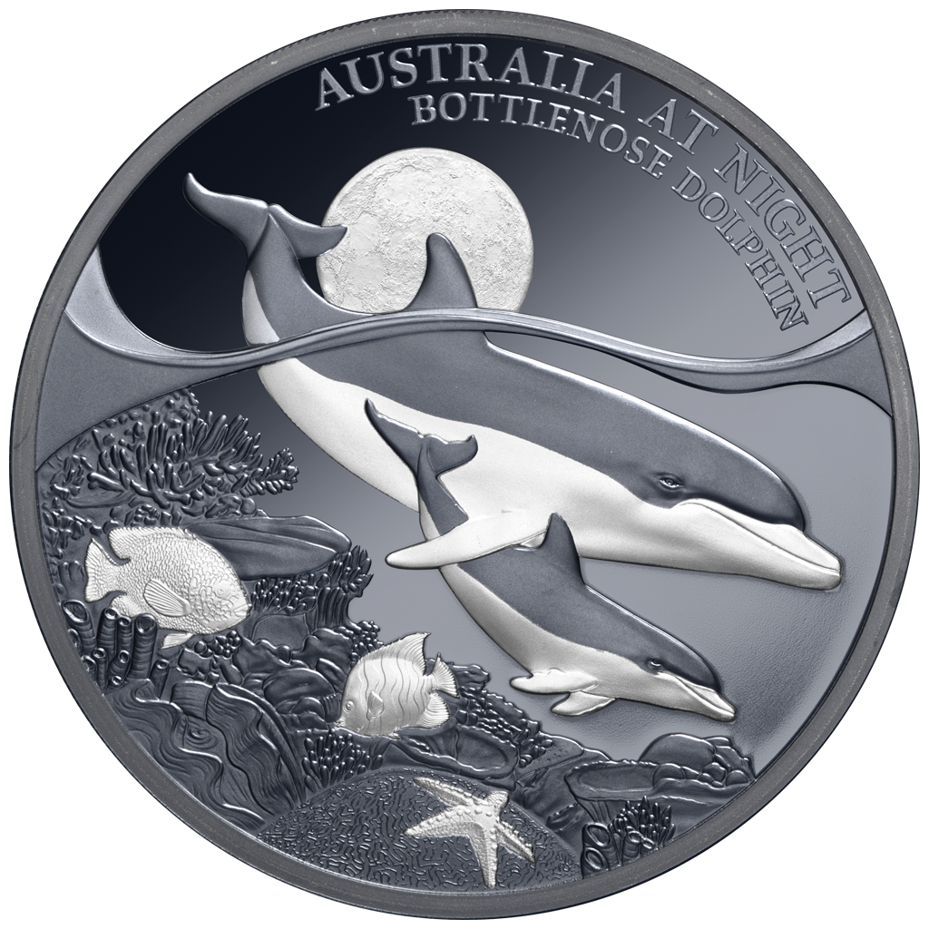 Niue: collectible silver coin Australia at Night. Bottlenose Dolphin 2025, Proof, 31.1 g pure silver (0.999)