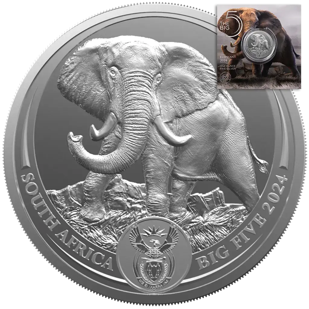 South Africa Collectible Silver Coin Big Five III – Elephant 2024, 1 oz of 0.999 Fine Silver