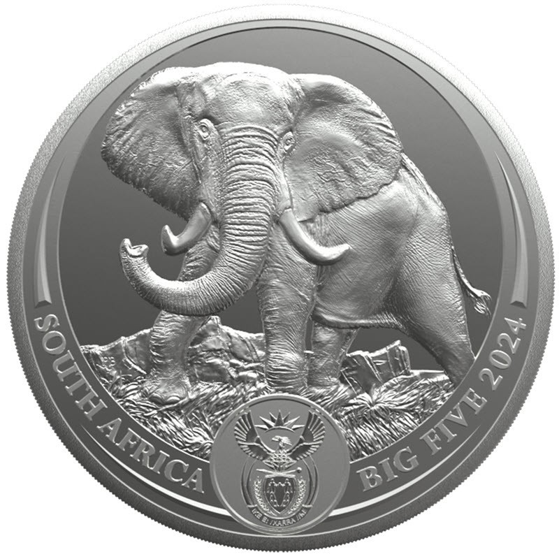South Africa Collectible Silver Coin Big Five III – Elephant 2024 Proof, 1 Kilo of 0.999 Fine Silver