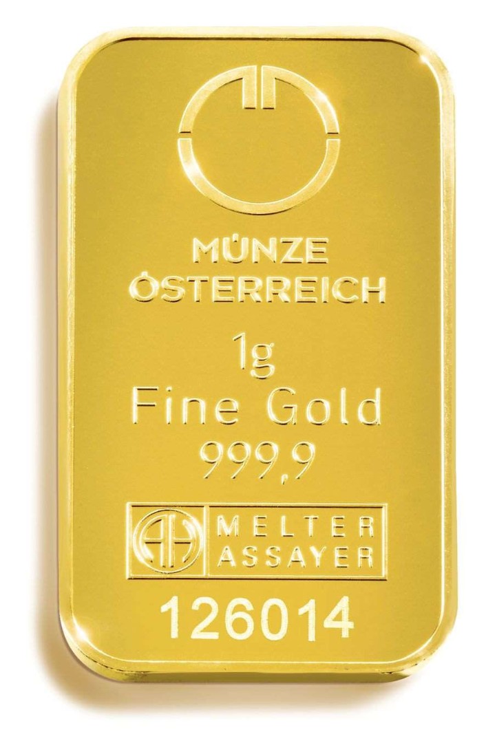A gold bar of pure gold, neatly packaged in a blister pack. High-purity gold bars are perfect both as gifts and as investments.